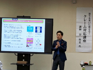 講師を務めたのは、クレーム・コンサルタントとして全国で活躍している谷厚志さんです。谷さんは学生時代から関西を拠点にタレント活動を行っていましたが、その後、一般企業に転じてお客様相談室での業務に携わりました。現場での経験を重ねる中で、お客様対応の実践力を磨かれました。2014年には、クレーム対応の重要性を社会に広く伝えることを目的として「一般社団法人 日本クレーム対応協会」を設立しました。現在は、企業研修や講演を通じて、クレーム対応のノウハウを全国に発信しています。