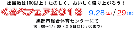 毎年秋の恒例イベント 「くろべフェア」を今年も9月28日(土)29日(日)に黒部市総合体育センターで開催します。