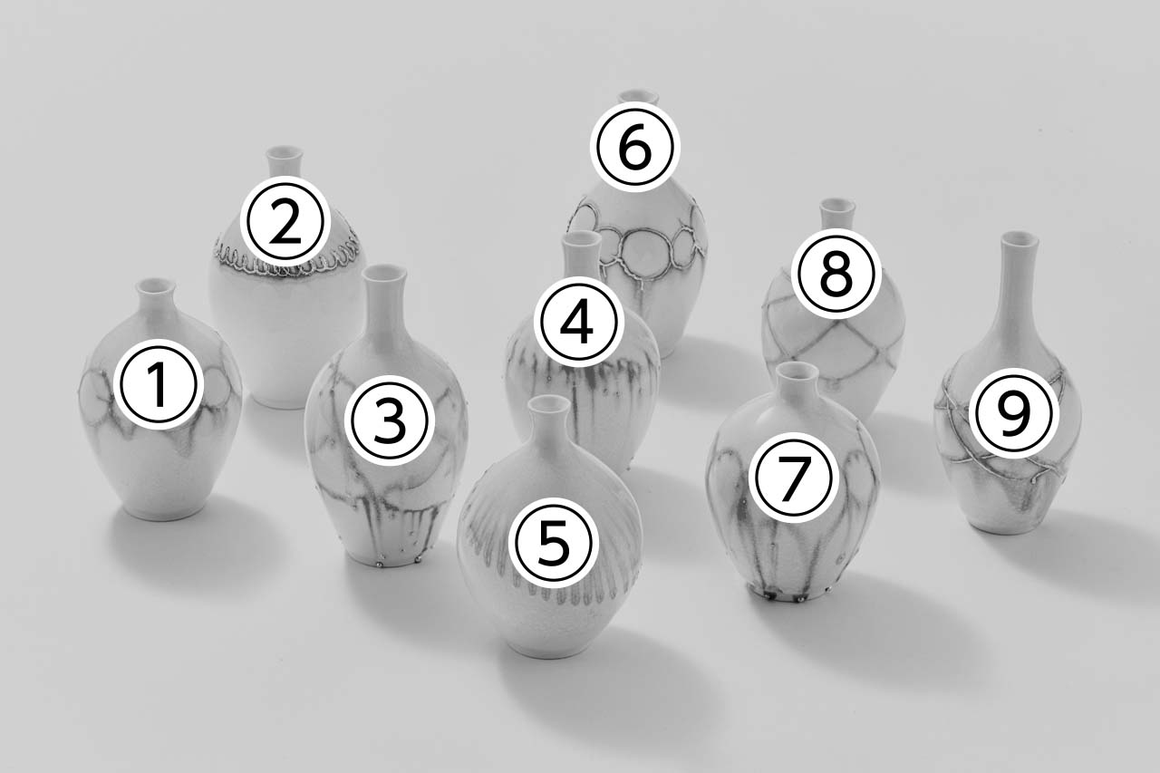 ①:φ6×10㎝、②:φ6.5×11㎝、③:φ6×11.5㎝、④:φ6×10㎝、⑤:φ7×9.5㎝、⑥:φ6×12.5㎝、⑦:φ6.5×9.5㎝、⑧:φ6×10.5㎝、⑨:φ5.5×12.5㎝