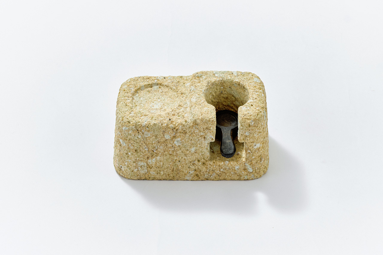 香炉は石燈籠や水鉢を作成する際に、副産物として得られる石材で、兵庫県産出の凝灰岩 受け皿は滑石