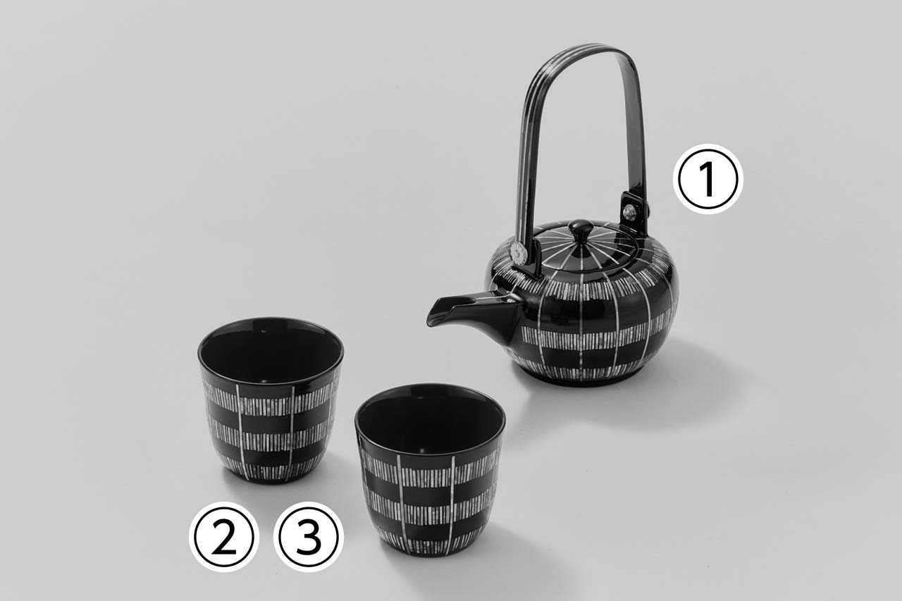 ①銚子:¥330,000、②・③カップ:各¥44,000